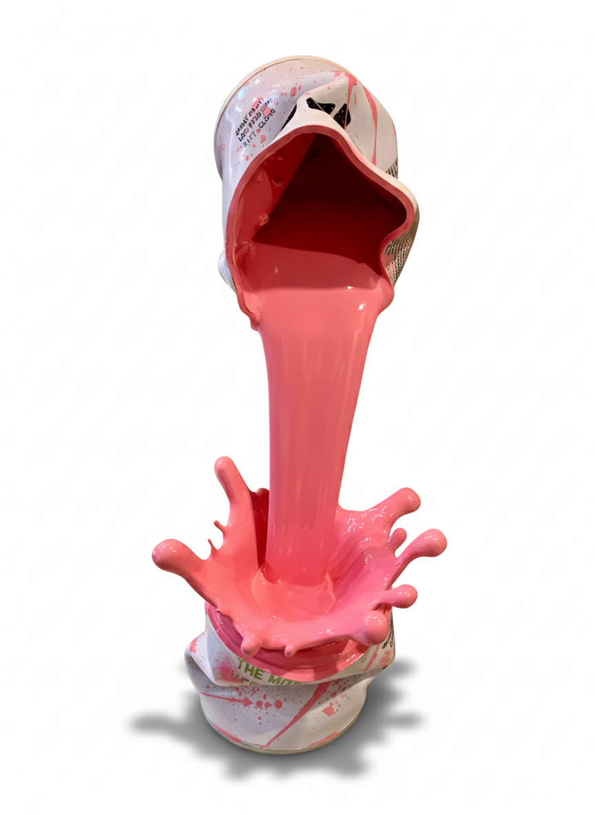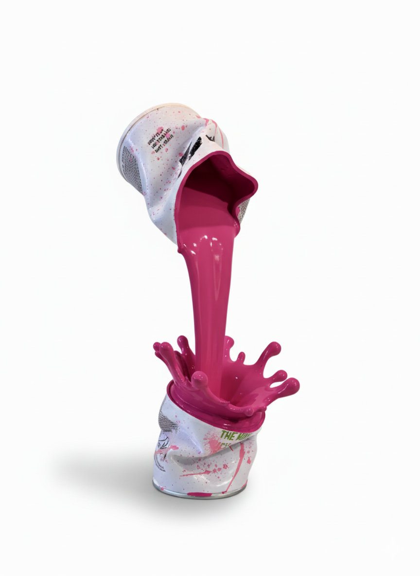 Fusionnant recyclage, résine, et un peu de magie, cette sculpture en lévitation donne l'illusion d'une éclaboussure de peinture suspendue.