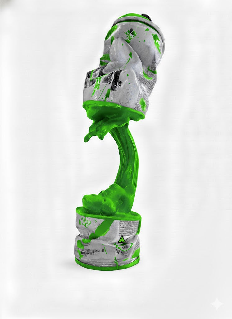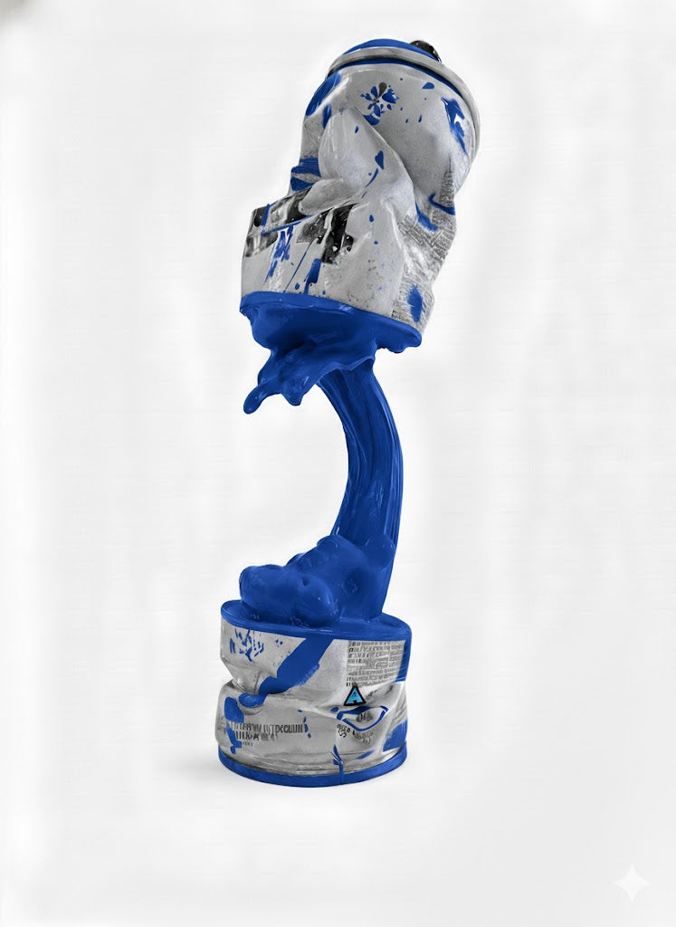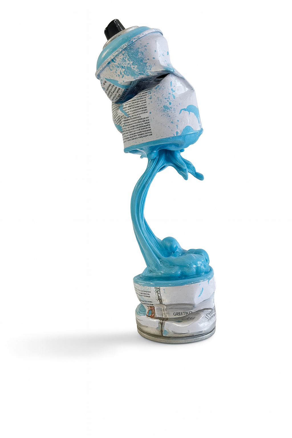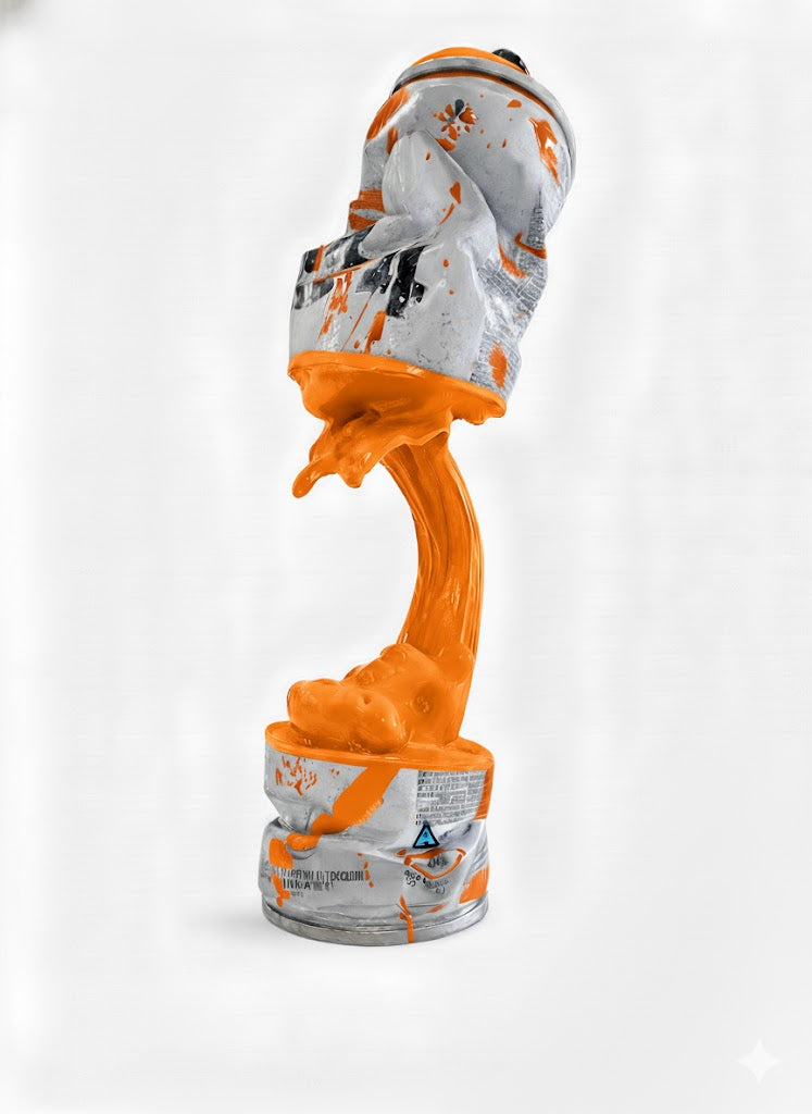 Sculpture d’une bombe de peinture métamorphosée en vague ascendante. Compression, tension, puis libération : la matière se soulève, comme guidée par une force invisible.